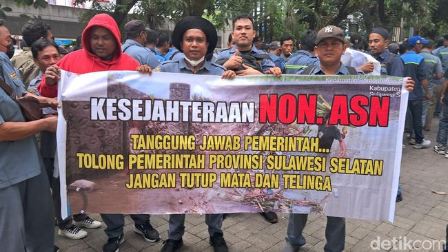 Curahan hati tenaga TPOP itu disampaikan dalam aksi unjuk rasa di kantor Dinas Sumber Daya Air, Cipta Karya dan Tata Ruang (SDA CKTR) Sulsel di Jalan AP Pettarani, Makassar, Senin (14/10/2024). Mereka menuntut pertanggungjawaban pemerintah memperhatikan kesejahteraannya.
