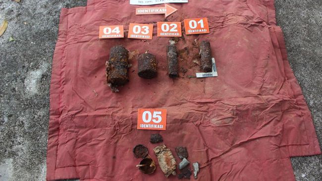 Pria bernama Amiruddin di Kabupaten Poso, Sulawesi Tengah (Sulteng) menemukan 5 buah bom rakitan atau bom lontong dalam kondisi berkarat saat membersihkan kebun. Tim penjinak bom (jibom) Satbrimob Polda Sulteng yang dikerahkan ke lokasi langsung mengamankan bom itu.
