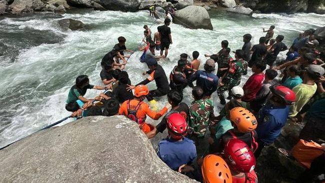 "Sementara mandi tiba-tiba terbawa arus 2 orang. Tapi yang satu selamat," tambahnya.