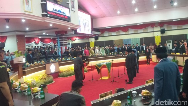 Sementara pengambilan sumpah ketua dan pimpinan DPRD Sulsel itu dipandu oleh Ketua Pengadilan Tinggi Makassar Zainuddin. 5 pimpinan DPRD Sulsel yang akan dilantik selanjutnya mengambil tempat di tengah ruang paripurna bersama rohaniwan.