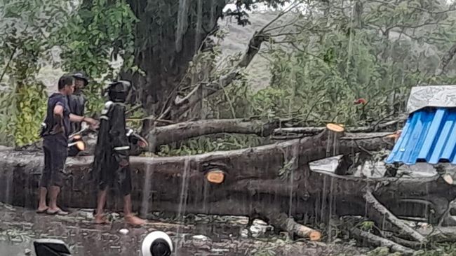 Seorang wanita pengendara motor berinisial AM (17) meninggal akibat tertimpa pohon tumbang di Kabupaten Gowa, Sulawesi Selatan (Sulsel). Korban tertimpa pohon saat berboncengan dengan iparnya berinisial R (20).
