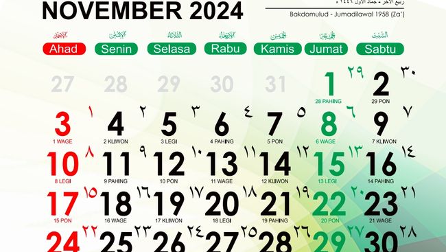 Berikut rincian kalender Hijriah sepanjang bulan November 2024 ini: