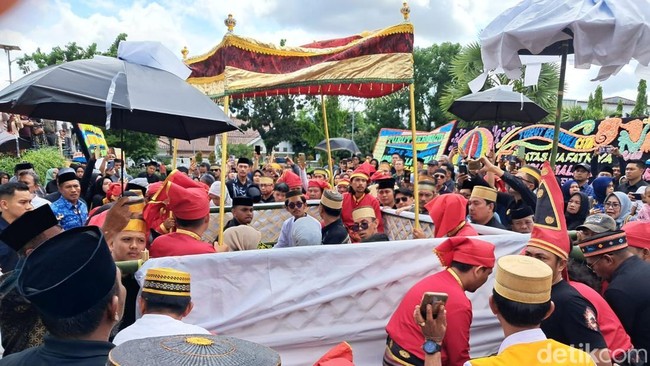 Pantauan detikSulsel di Istana Balla Lompoa, Jalan KH Wahid Hasyim, Nomor 39, Kelurahan Sungguminasa, Kecamatan Somba Opu, Kamis (29/11/2024), upacara pelepasan jenazah dimulai sekitar pukul 10.10 Wita.