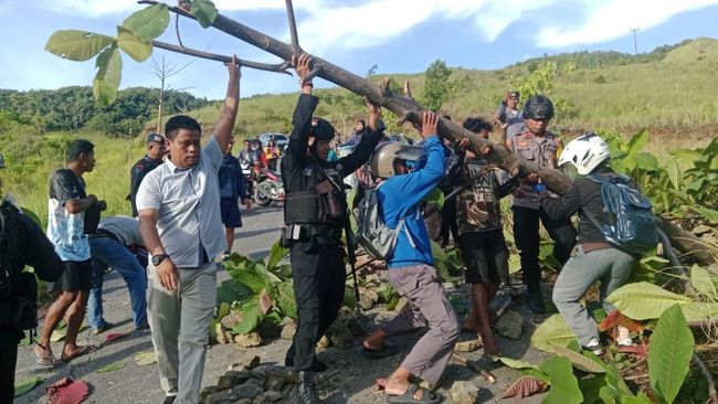 "Jadi OTK memblokade jalan menggunakan batang pohon. Mereka juga menaruh batu dan ranting pohon di atas jalan," jelasnya.