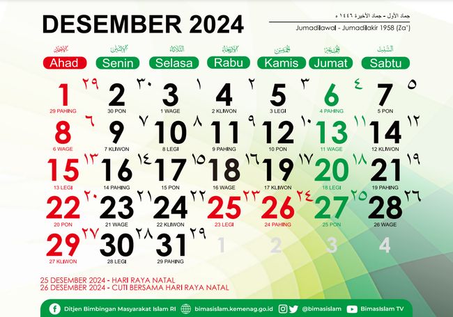 - 25 Desember 2024: 23 Jumadil Akhir 1446
