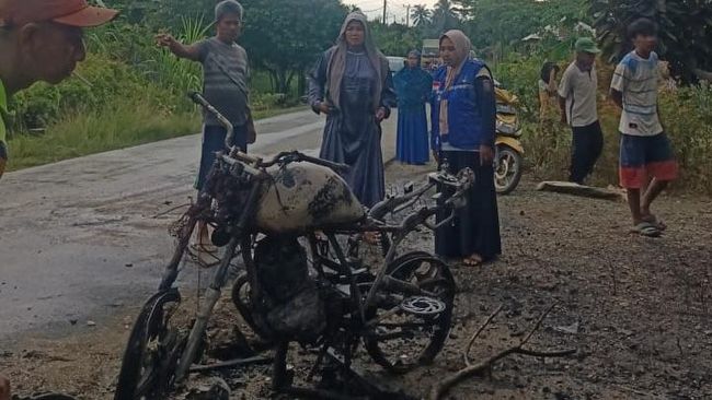 Akibat kebakaran tersebut, motor korban hangus dan hanya meninggalkan rangka besi. Beruntung korban berhasil selamat dalam insiden tersebut.