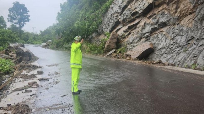 Pengendara yang melintas di Jalan Poros Maros-Bone, di Kabupaten Maros, Sulawesi Selatan (Sulsel), diminta untuk lebih waspada. Jalur tersebut masih rawan terjadi longsor sebab masih diguyur hujan.
