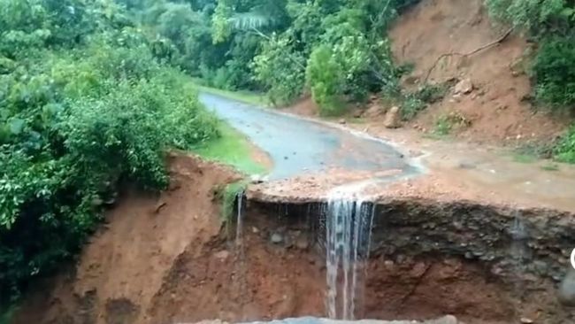 Jalan antardesa di Kecamatan Pujananting, Kabupaten Barru, Sulawesi Selatan (Sulsel), amblas akibat hujan deras. Akses jalan 3 desa pun sudah tiga hari terputus karena jalanan belum diperbaiki.