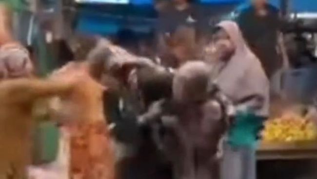 Sementara dalam video beredar, tampak DA dan HS saling pukul dan tarik rambut di dalam pasar. Keduanya bahkan sampai terjatuh.