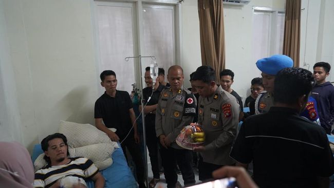 Rombongan Polda Sulbar membesuk Ramli yang dirawat di RSUD Mamuju pada Kamis (2/1). Dalam kunjungan itu, Kepala Rumah Sakit (Karumkit) Bhayangkara Mamuju Iptu dr. Andi Iqbal melakukan pemeriksaan medis untuk mengetahui kondisi terkini korban.