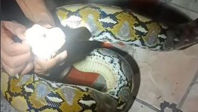 "Anggota katakan (jenis) sanca. Kelaminnya betina. Ukurannya itu kurang lebih 2 meter, 2 meter lebih," katanya.