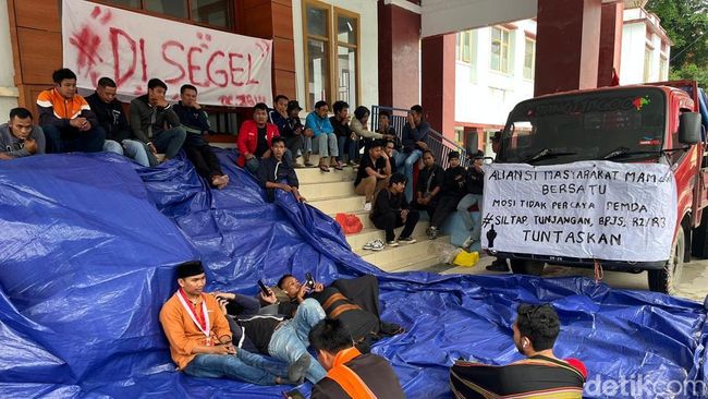 Kantor Bupati di Kabupaten Mamasa, Sulawesi Barat (Sulbar), disegel massa yang tergabung dalam Aliansi Masyarakat Mamasa Bersatu. Mereka mendesak pemerintah setempat membayar gaji aparat desa yang masih tertunda serta menyelesaikan iuran BPJS ribuan warga di bawah tanggungan pemerintah.