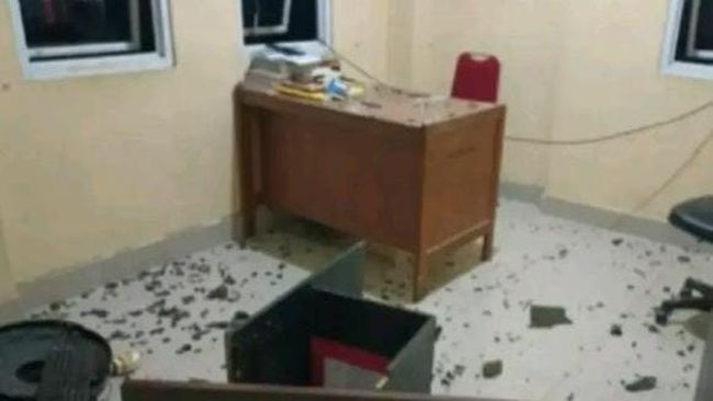 Dalam foto beredar, terlihat ruangan kantor polsek rusak. Foto itu kemudian dilengkapi dengan narasi bahwa Polsek Popayato Barat diserang puluhan penambangilegal.