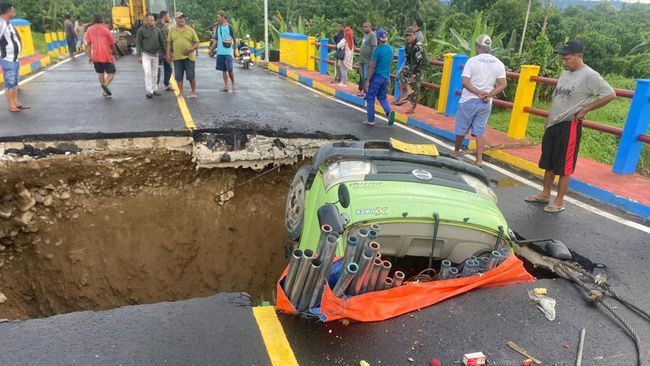 Sebuah jembatan di Kabupaten Seram Bagian Timur, Maluku, tiba-tiba ambruk saat dilintasi truk. Kecelakaan tunggal tersebut mengakibatkan sopir truk bernama Anto Erniyanto (49) terluka.