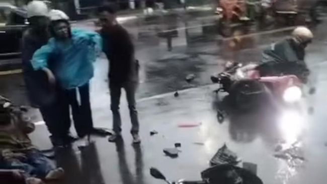 Lanjut Heri, mobil Toyota Rush itu kemudian tiba-tiba oleng ke jalur kanan. Kendaraan tersebut lantas menabrak enam sepeda motor yang datang dari arah berlawanan.