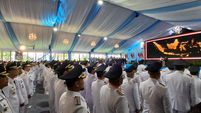 Setelah pembacaan sumpah jabatan, keenam perwakilan kepala daerah itu kemudian menandatangani berita acara. Jumlah 961 itu terdiri dari gubernur, wali kota, bupati, beserta para wakil-wakilnya.