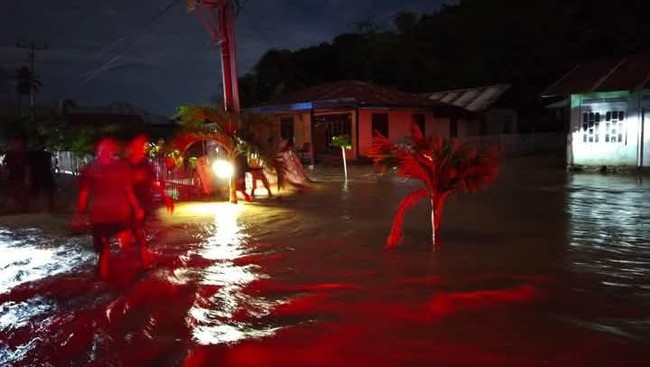 Banjir merendam pemukiman warga di dua desa di Kabupaten Parigi Moutong, Sulawesi Tengah (Sulteng). Sebanyak 4 rumah hanyut terbawa arus dan 50 kepala keluarga (KK) mengungsi.