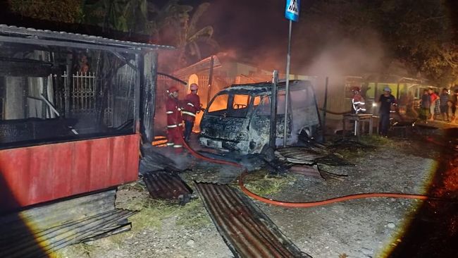 Dua kios dan satu unit mobil angkot di Walenrang, Kabupaten Luwu, Sulawesi Selatan (Sulsel), ludes terbakar. Kebakaran diduga akibat korsleting listrik dari salah satu kios.