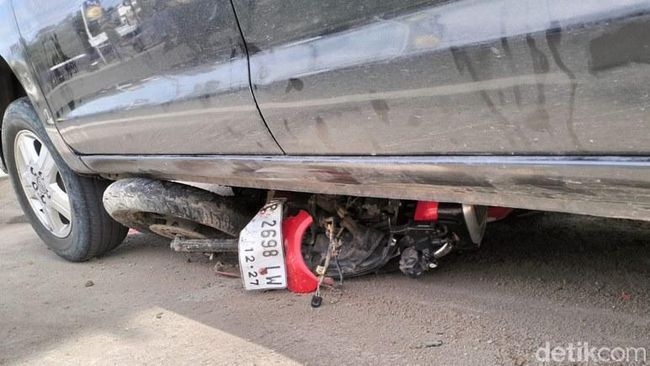 "Mobil yang dikendarai oleng ke kanan dan keluar jalur lalu terlibat tabrakan dengan pemotor," ungkap Sandy.