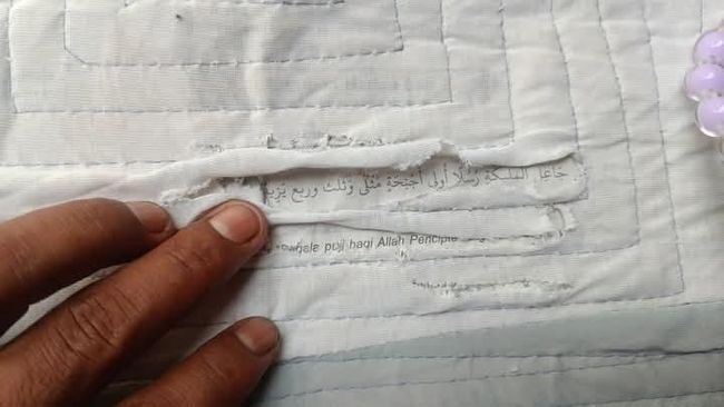 Keset kaki bertuliskan ayat Al-Qur'an itu ditemukan oleh warga bernama Nadia Walangadi di Desa Motolohu, Kecamatan Helumo, Bolsel pada Sabtu (22/3). Nadia membeli keset kaki tersebut dari pedagang yang menggunakan mobil pikap.