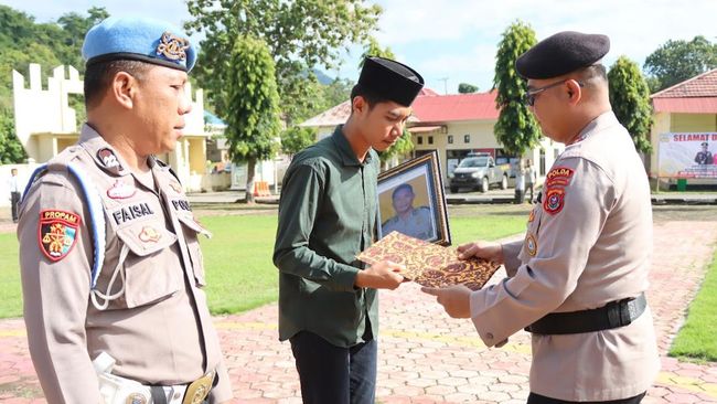 "Sebagai bentuk penghargaan atas jasa, dedikasi dan pengorbanannya, maka Polri memberikan kenaikan pangkat luar biasa Anumerta dari pangkat terakhir almarhum," kata Kombes Andi Herman membacakan amanat Kapolda Sultra Irjen Dwi Irianto, Rabu (16/4/2025).