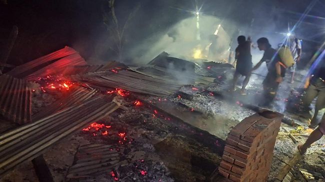 "Semalam sudah diupayakan padamkan api, tapi cepat sekali membesar. Sebentar sekali api sudah di atas atap karena atap rumbia di belakang," ungkap Ali.
