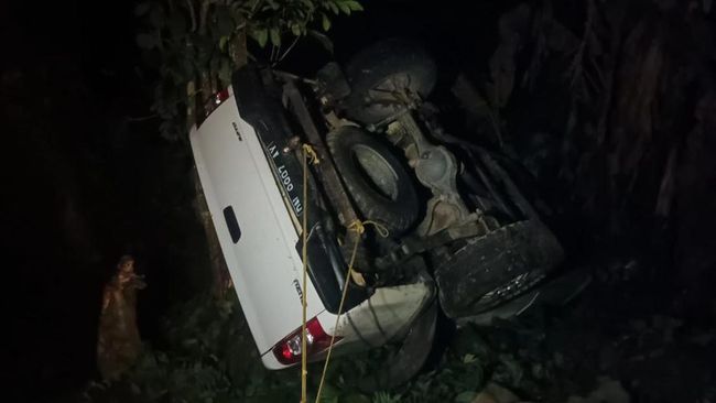 "Mobil kehilangan kendali dan akhirnya jatuh ke jurang, korban ditemukan dalam kondisi tidak sadarkan diri oleh warga sekitar setelah seorang pengendara ojek melihat kendaraan di dasar jurang," ucapnya.