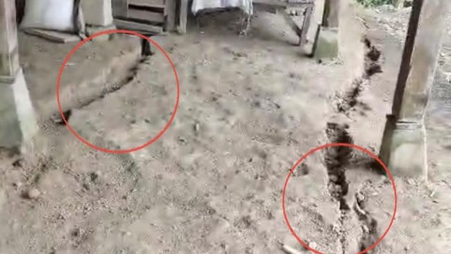 "Itu di sana juga muncul retakan tanah di bawah rumah warga. Jadi berbahaya. Sebenarnya sudah lama muncul dan sempat ditimbun dengan tanah, tetapi itu kalau hujan deras terbuka lagi itu retakan tanah di sana," jelasnya.