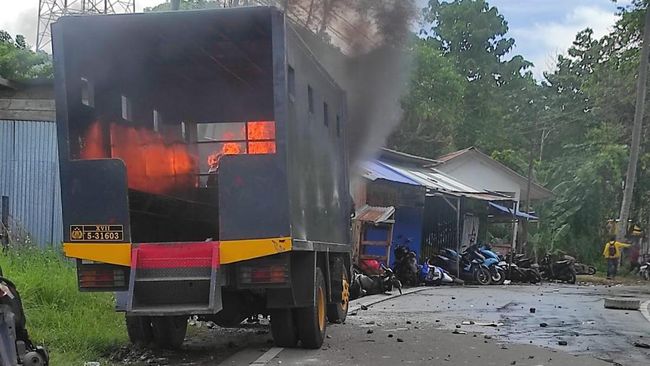 Demo mahasiswa Universitas Cenderawasih (Uncen) yang menolak kenaikan uang kuliah tunggal (UKT) di Kota Jayapura, Papua, berakhir ricuh. Empat personel polisi terluka akibat lemparan batu dan satu mobil truk polisi dibakar massa.