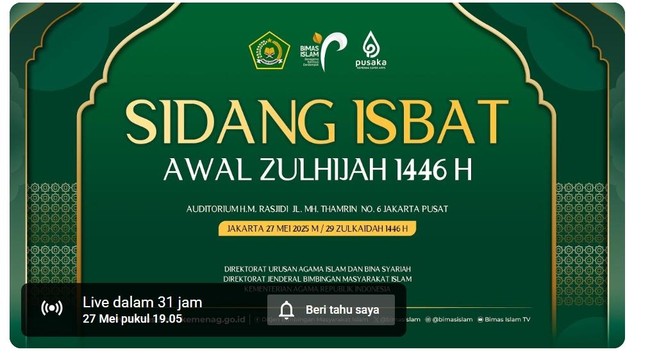 Link Live Streaming Sidang Isbat Idul Adha 2025 Kanal Youtube Bimas Islam TV