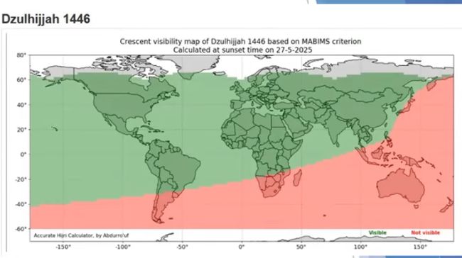 Thomas menjelaskan, berdasarkan analisis garis tanggal, posisi bulan telah memenuhi batas kriteria MABIMS di wilayah Aceh pada waktu Magrib, 27 Mei 2025 di Indonesia. Adapun kriteria MABIMS sendiri yaitu tinggi minimal 3 derajat dan elongasi minimal 6,4 derajat.