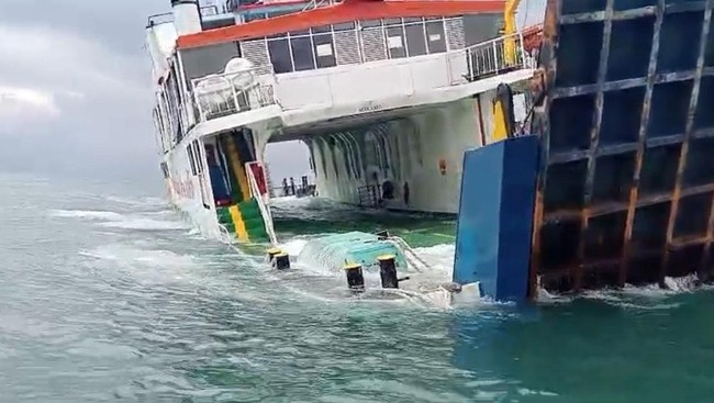 Kapal feri KMP Tongkol kandas di perairan Kabupaten Konawe Selatan (Konsel), Sulawesi Tenggara (Sultra) usai lambung kapal diduga bocor. Tujuh anak buah kapal (ABK) berhasil dievakuasi dalam keadaan selamat.