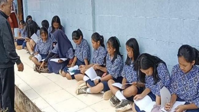 Siswa SMP PGRI Marinding di Kabupaten Tana Toraja, Sulawesi Selatan (Sulsel), terpaksa belajar di lantai koridor sekolah gegara ruangan kelas disegel. Ruang kelas diduga disegel oleh oknum anggota DPRD Tana Toraja.