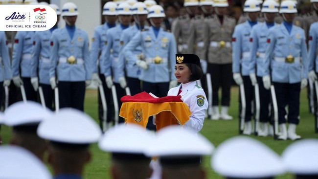 - Berdiri tegap saat Lagu Kebangsaan Indonesia Raya berkumandang dan Bendera Merah Putih dikibarkan di Istana Merdeka.