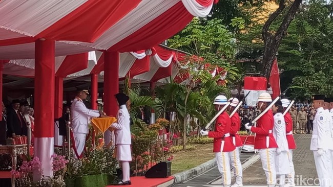 Gubernur Sulawesi Selatan (Sulsel) Andi Sudirman Sulaiman memimpin upacara HUT ke-80 RI di lapangan Rumah Jabatan (Rujab) Gubernur Sulsel di Makassar. Andi Sudirman menggaungkan Hari Kemerdekaan menjadi momentum memperkuat ekonomi dan meningkat kesejahteraan.