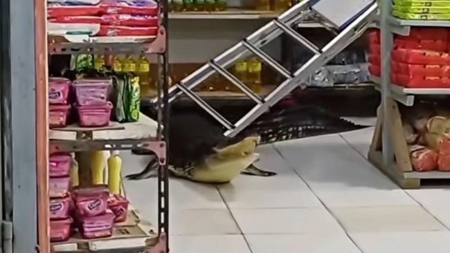 Warga di Kabupaten Pulau Taliabu, Maluku Utara, dihebohkan kemunculan buaya berukuran besar ke dalam sebuah minimarket. Buaya itu sempat bikin panik hingga petugas pemadam kebakaran (damkar) datang melakukan evakuasi.
