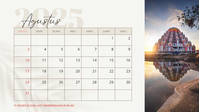 Berikut rincian kalender Islam Hijriah sepanjang bulan Agustus 2025:
