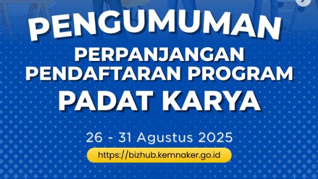 Pendaftaran program Padat Karya 2025 diperpanjang. Awalnya, pendaftaran ini hanya berlangsung sampai 24 Agustus 2025.