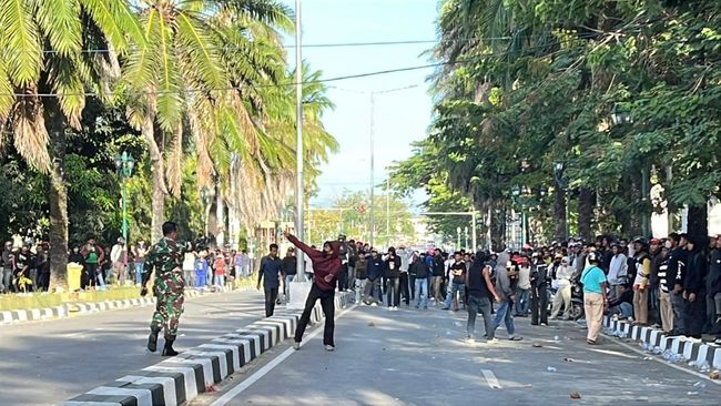 Pantauan detikcom, Senin (1/9) sekitar pukul 15.30 Wita, sejumlah massa yang tak terorganisir melempari sebelah timur kantor DPRD Sultra. Batu-batu telah dipersiapkan massa saat datang ke lokasi aksi.