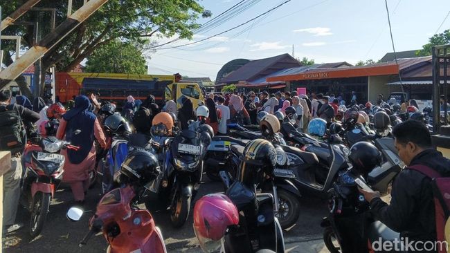 Padatnya antrean terlihat sejak pagi hingga sore hari. Antrean pun mengular hingga ke lapangan upacara Mapolres Pinrang yang berjarak sekitar 300 meter.