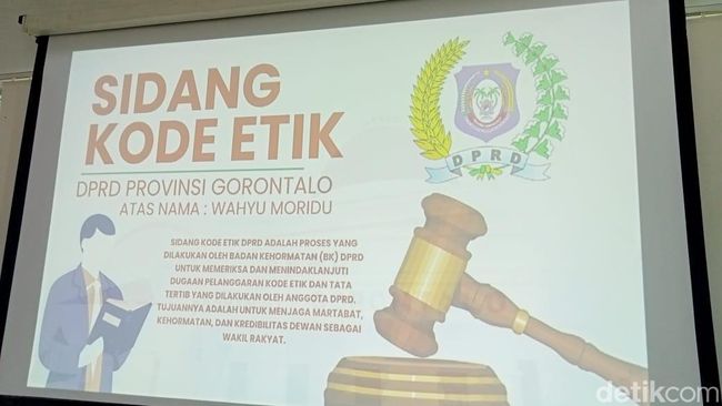 "Iya, undangan itu sekitar jam 10.00. Sidang kode etik DPRD Provinsi Gorontalo atas nama Wahyudin Moridu," ujar Ketua BK DPRD Provinsi Gorontalo Fikram Salilama kepala detikcom, Senin (22/9/2025).
