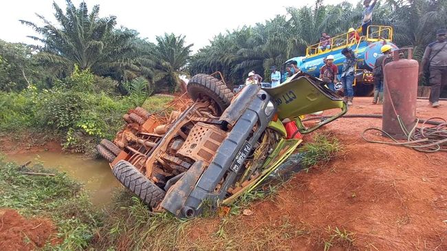 Truk tangki pengangkut minyak kelapa sawit (CPO) terbalik di Merauke, Papua Selatan. Satu anak berinisial KS (2) tewas sementara dua orang lainnya inisial YB dan MMT mengalami luka.