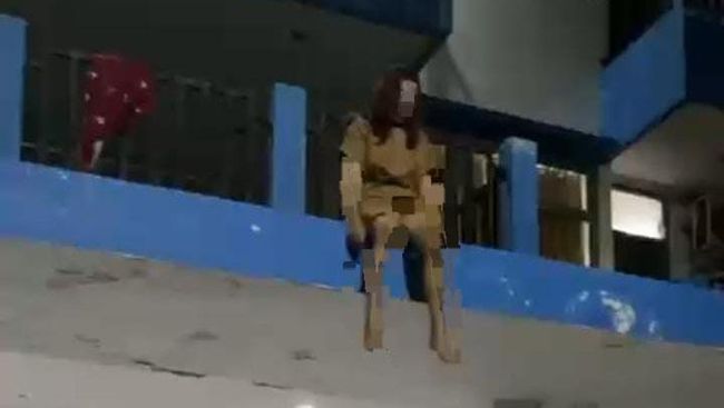 Dalam video yang dilihat detikcom, terlihat mahasiswi itu mengenakan baju berwarna coklat dengan rambut terurai. Mahasiswi itu duduk dengan tatapan kosong di atas balkon.