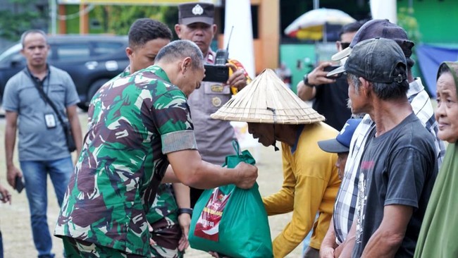 Kodam XIV/Hasanuddin membagikan 4.500 paket sembako kepada warga Makassar, Sulawesi Selatan (Sulsel). Pembagian sembako ini dilakukan dalam rangka menyambut HUT ke-80 TNI yang jatuh pada 5 Oktober mendatang.