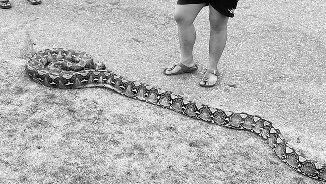 "Langsung dipotong tadi itu ular di kepalanya, panjangnya sekitar 6 meteran," kata warga setempat Aldi kepada detikcom, Minggu (5/10/2025).