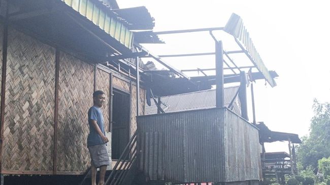 "Laporan warga, hujan disertai angin kencang datang dan menerbangkan bagian atap rumah mereka," kata Rhommy.