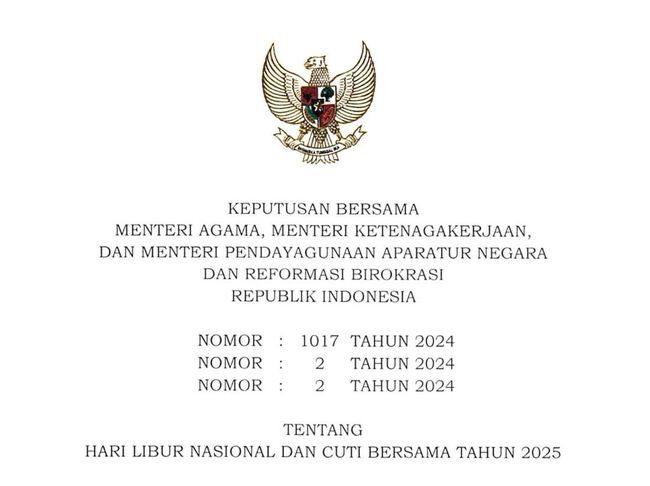 Di Indonesia, penetapan mengenai hari libur tertuang dalam Surat Keputusan Bersama (SKB) 3 Menteri yang diterbitkan setiap tahun. SKB tersebut dikeluarkan oleh Menteri Agama, Menteri Ketenagakerjaan, dan Menteri PAN-RB, dan menjadi acuan resmi untuk libur nasional dan cuti bersama.