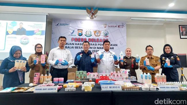 "Dalam operasi penindakan ini berhasil ditemukan produk kosmetik tanpa izin edar sebanyak 55 item, 4.771 pcs dengan nilai ekonomi sekitar Rp 728.420.000," ujar Kepala BBPOM Makassar Yosef Dwi Irwan saat konferensi pers, Senin (27/10/2025).