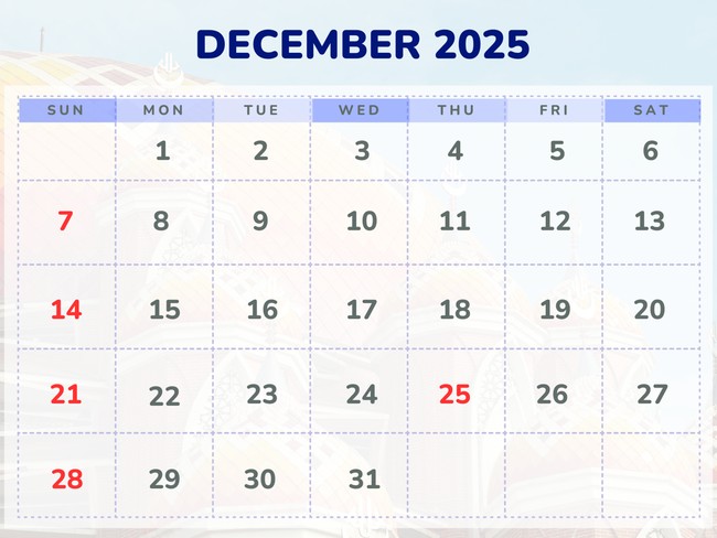 Berikut adalah kalender Desember 2025 lengkap tanggal merahnya: