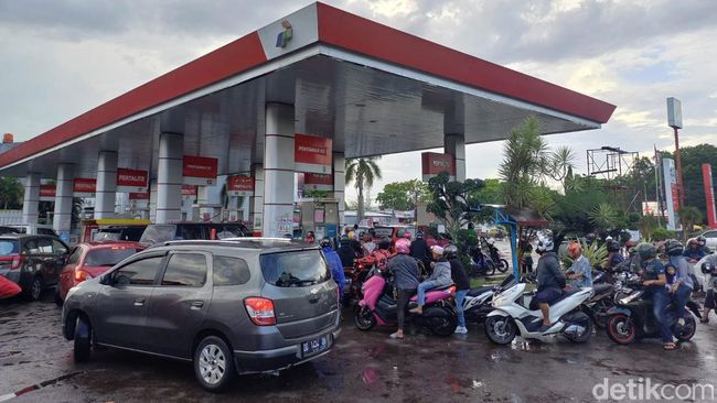 Berdasarkan pantauan detikSulsel, Sabtu (3/9/2022) sejak pukul 15.45 Wita, antrean kendaraan mulai tampak. Antrean kendaraan roda dua sudah mengular 20 meter dan terus bertambah hingga mendekati pintu masuk SPBU.